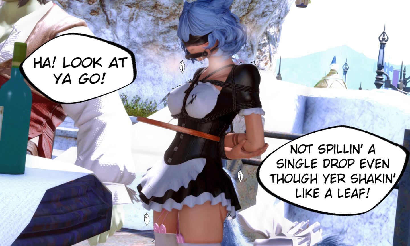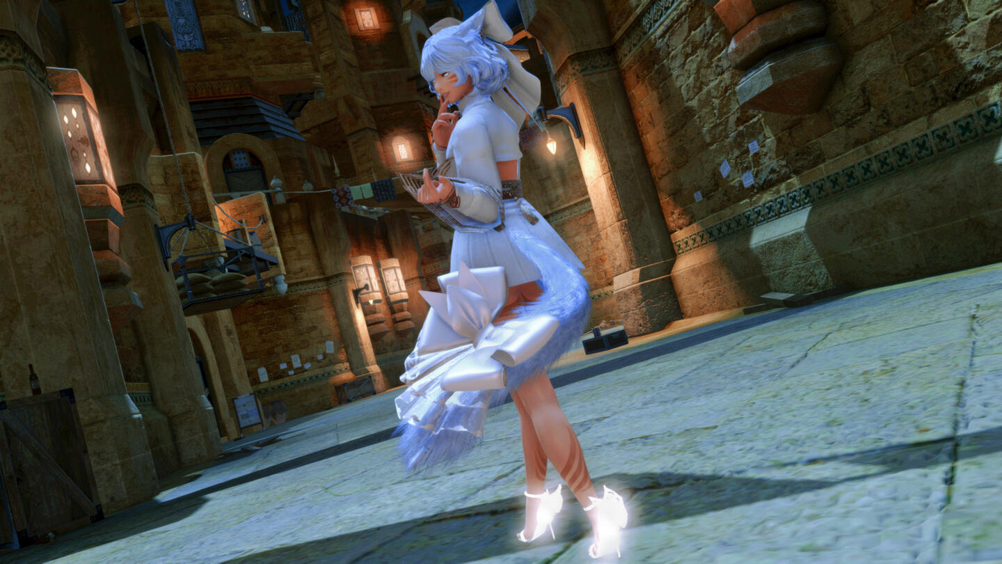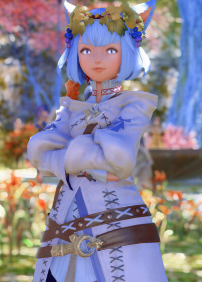 She would carefully observe conjurers that came into the Shroud to meditate and practice their magics, and even made her own makeshift staffs out of branches she found to practice alongside them. Imzadi would beg her guardians to bring her more books about conjury, and through her studies, she would come to learn more about the Fifth Astral Era and the War of the Magi. She became fascinated with learning about the mages who first interacted with the elementals, and how they discovered many things from them. Unfortunately, in her eagerness to learn and interact with elementals like the mages she had read about, she one day summoned a blight by accident, an incident that required the intervention of E-Sumi-Yan. After the situation was dealt with, he noticed the potential in Imzadi and strongly encouraged her to join the Counjures' Guild, something of which she gladly accepted.While studying under the teachings of E-Sumi-Yan, Imzadi also expressed interest in archery, and soon began practicing with the guidance of her Hrothgar guardians. With her extensive knowledge of the Shroud and innate abilities from being a Miqo'te, Imzadi was able to quickly master the shortbow and, in due time, became a notable member of the Archers' Guild in Gridania.A majority of her childhood was dedicated to honing her skills, both physical and magical, as she desperately wanted to join her Hrothguardians on several of their jobs. As she grew older and became more insistent, they (begrudgingly) agreed to take her along with them.