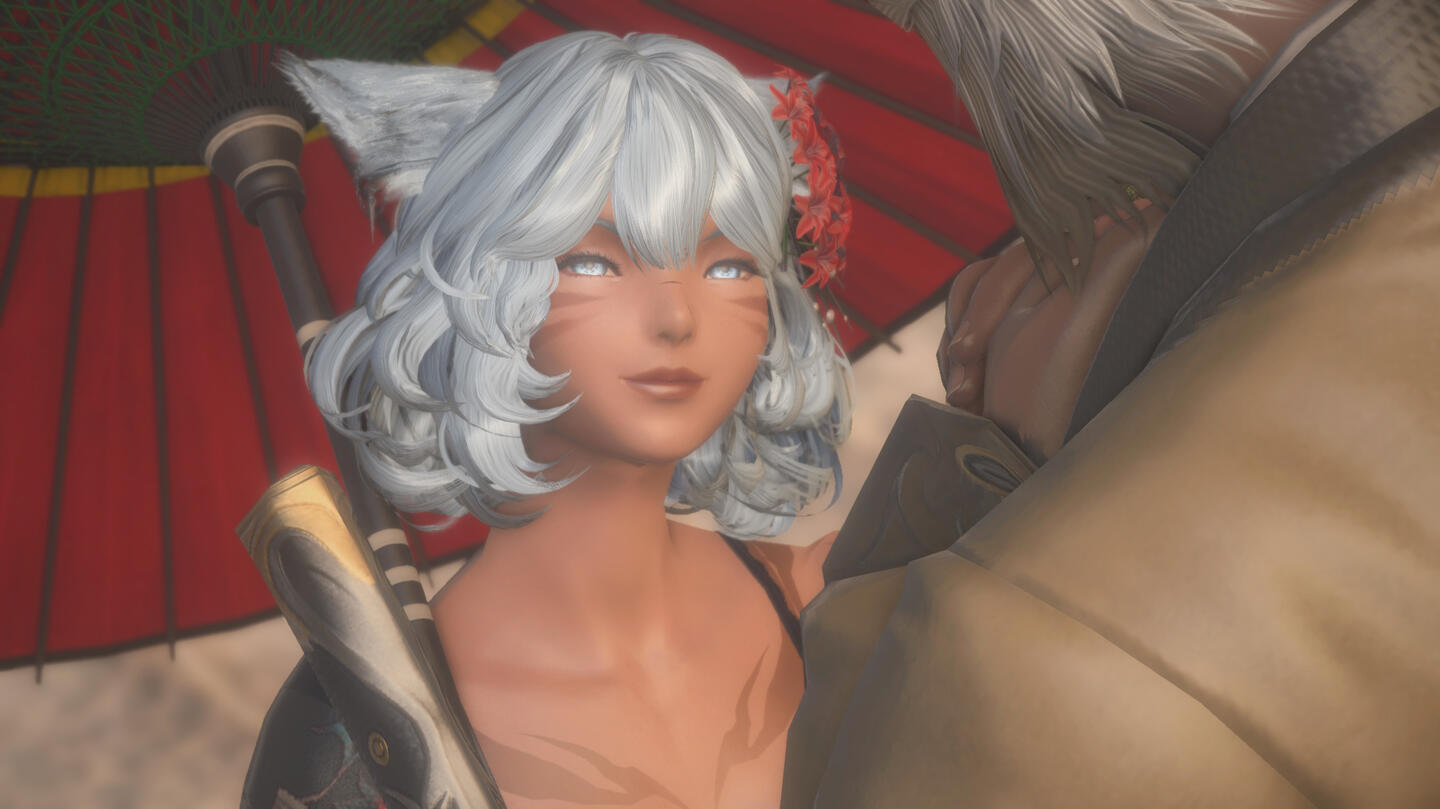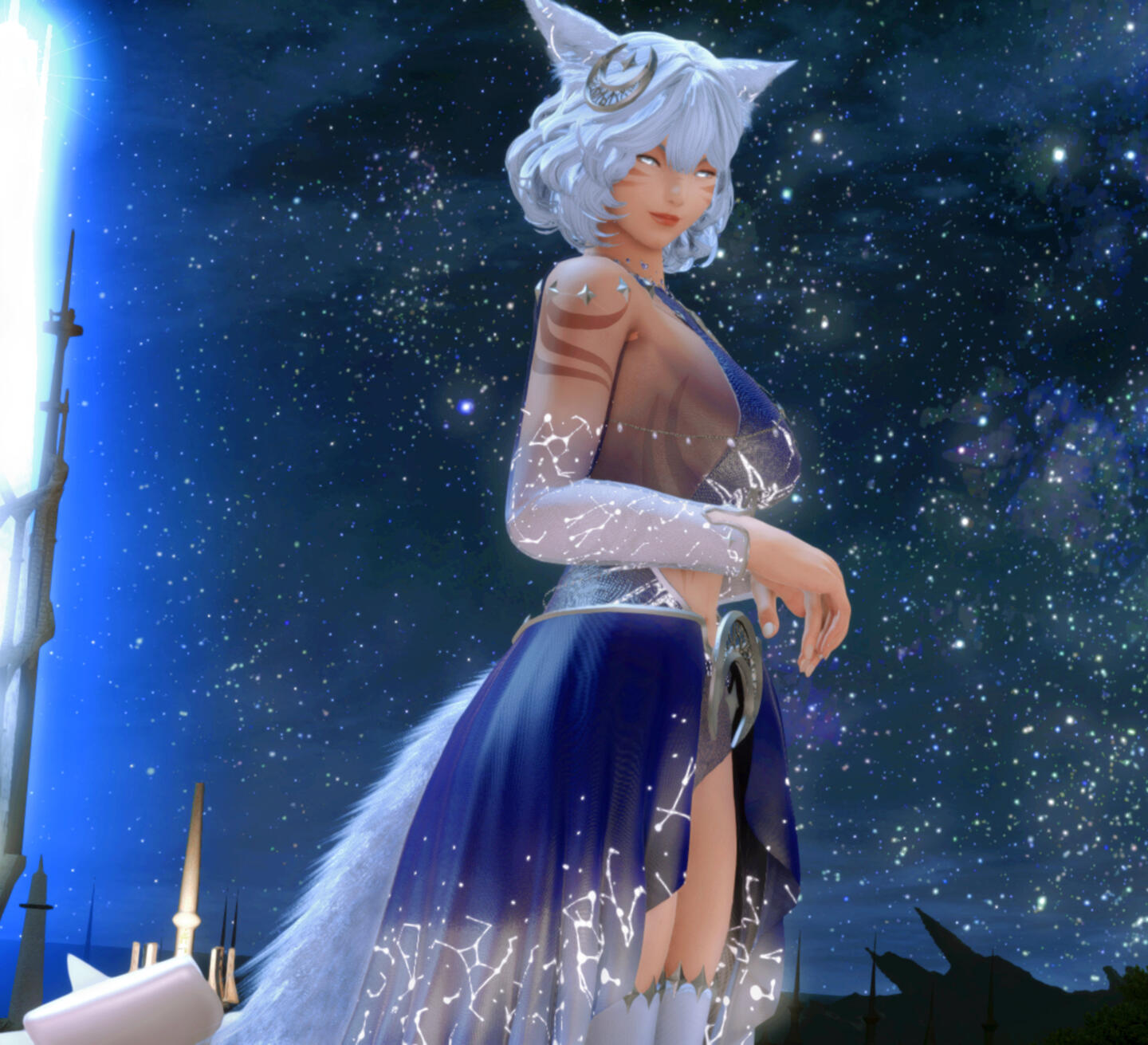 A charming and graceful Miqo'te hailing from the Black Shroud. Half-Seeker, half-Keeper, this kind and curious soul loves adventuring and experiencing what life has to offer.For the most part, Imzadi is calm and collected, almost graceful in many settings. She can be a bit mischievous -- misusing a Rescue every now and then -- but for the most part, she is kind and gentle. While she understands her limits, she will still try everything in her power to do what she can, especially if she is trying to protect her loved ones.She loves to explore and learn, taking any chance to go on all kinds of adventures. Although she is not from Sharlayan, her strong and curious desire to learn more would have one assuming she was. Imzadi is also quite fond of people-watching, and she will often visit busy cities just to watch the day-to-day interactions.Imzadi is not one for religion, however, she does believe that The Twelve have an influence on how the world works. She also finds political talk to be extremely boring, so she tries to avoid attending political meetings when she can. Any time she had to attend something of the sorts, she dreaded it.She has a deep fear of losing more people that she loves, especially more of the Scions and her Hroth guardians. She will occasionally have nightmares about them dying in front of her, and while she understands that they are just dreams, it does shake her to her core some days.