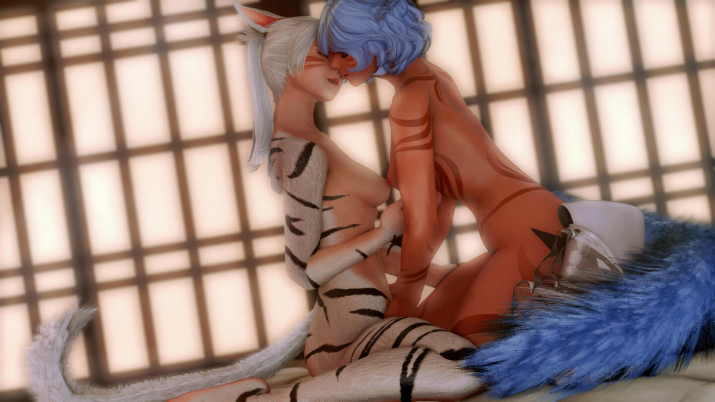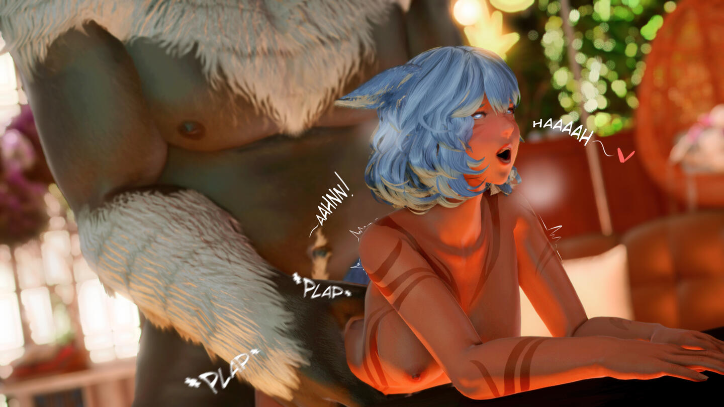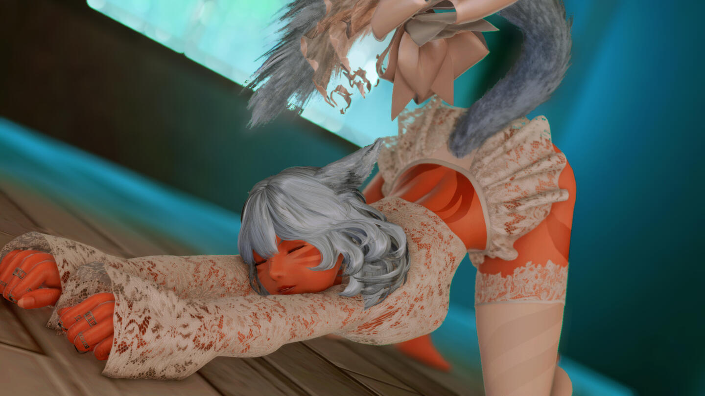 Deep in the twisting woods of the Black Shroud, a mortally wounded female Keeper of the Moon stumbled through the night before coming across two Hrothgar mercenaries who had made camp not too long ago. Her hands clutching the bundle of cloth tightly to her chest, she gave them a pleading look before collapsing, her injuries finally catching up to her. Despite their combined efforts, they were unable to heal her wounds, and, with her dying breath, she whispered the name of the babe in her arms before entrusting the sleeping Imzadi to them.Imzadi's guardians took great care in raising her, being sure to teach her of the harsh realities of the world while also making sure she knew that she was cared for deeply. They taught her how to survive out in the wild and endure the elements while also training her in a variety of different weapons. The two Hrothgars soon realized that she had a strong affinity with aether and were unsure on how to properly train her regarding it. They decided that the literature written by previous scholars would be the best course of action, and so they brought her a number of tomes from their missions in which she greedily accepted, curiosity always taking a hold of her when presented with a new challenge. In addition to her own studies, she would secretly visit the Conjurers' Guild in Old Gridania frequently to watch from afar and study their methods, something that did not go unnoticed by E-Sumi-Yan.